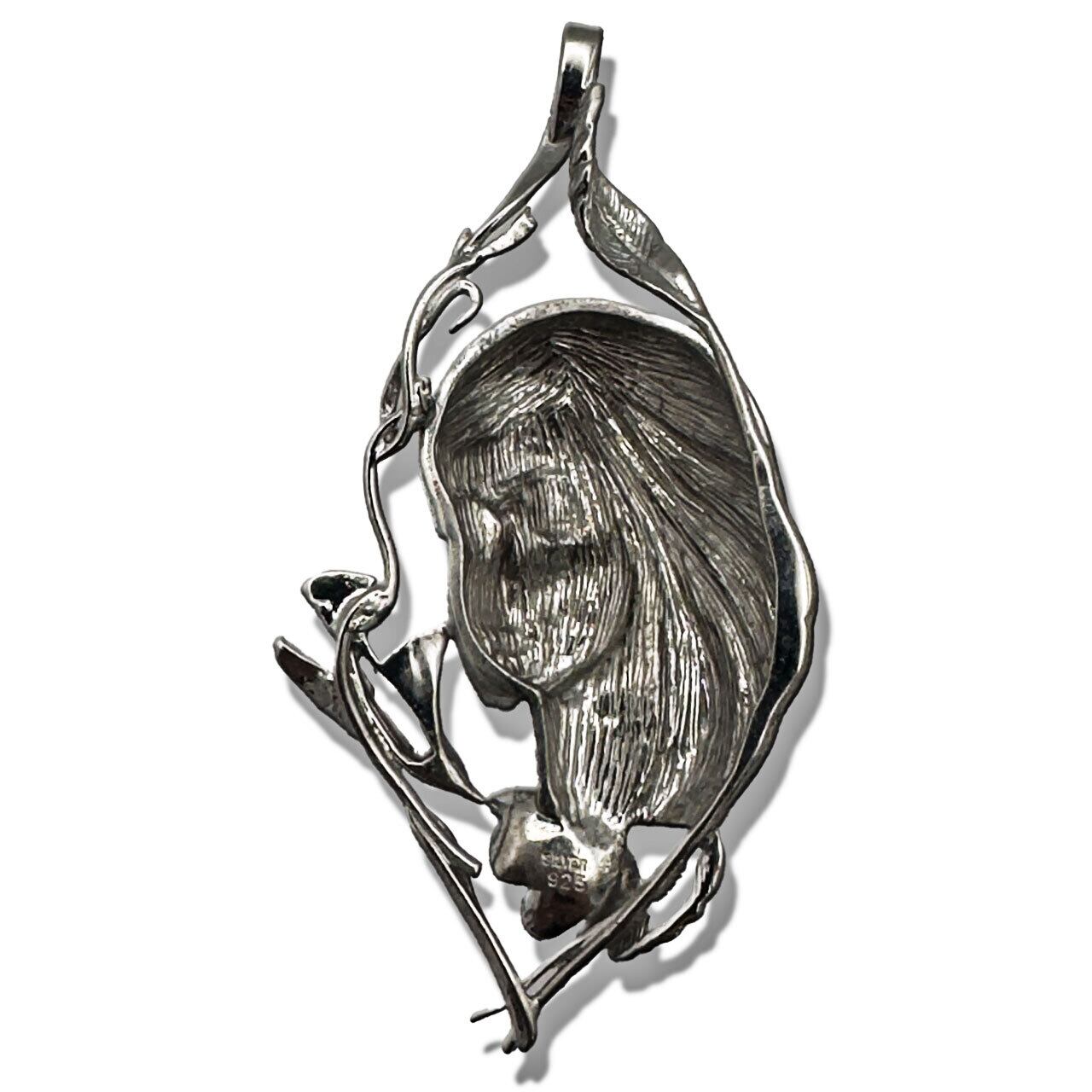 ・柳澤商会ヴィンテージコレクションの整理中に見つかった、シルバーペンダントトップ。穏やかな表情の女性と繊細に表現された花と鳥が調和し、優美で落ち着いた雰囲気を漂わせる一品です