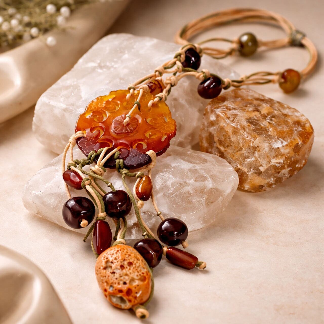 ・自然の恵みを感じさせる珊瑚と天然素材を贅沢に組み合わせた、唯一無二の存在感を放つネックレス
