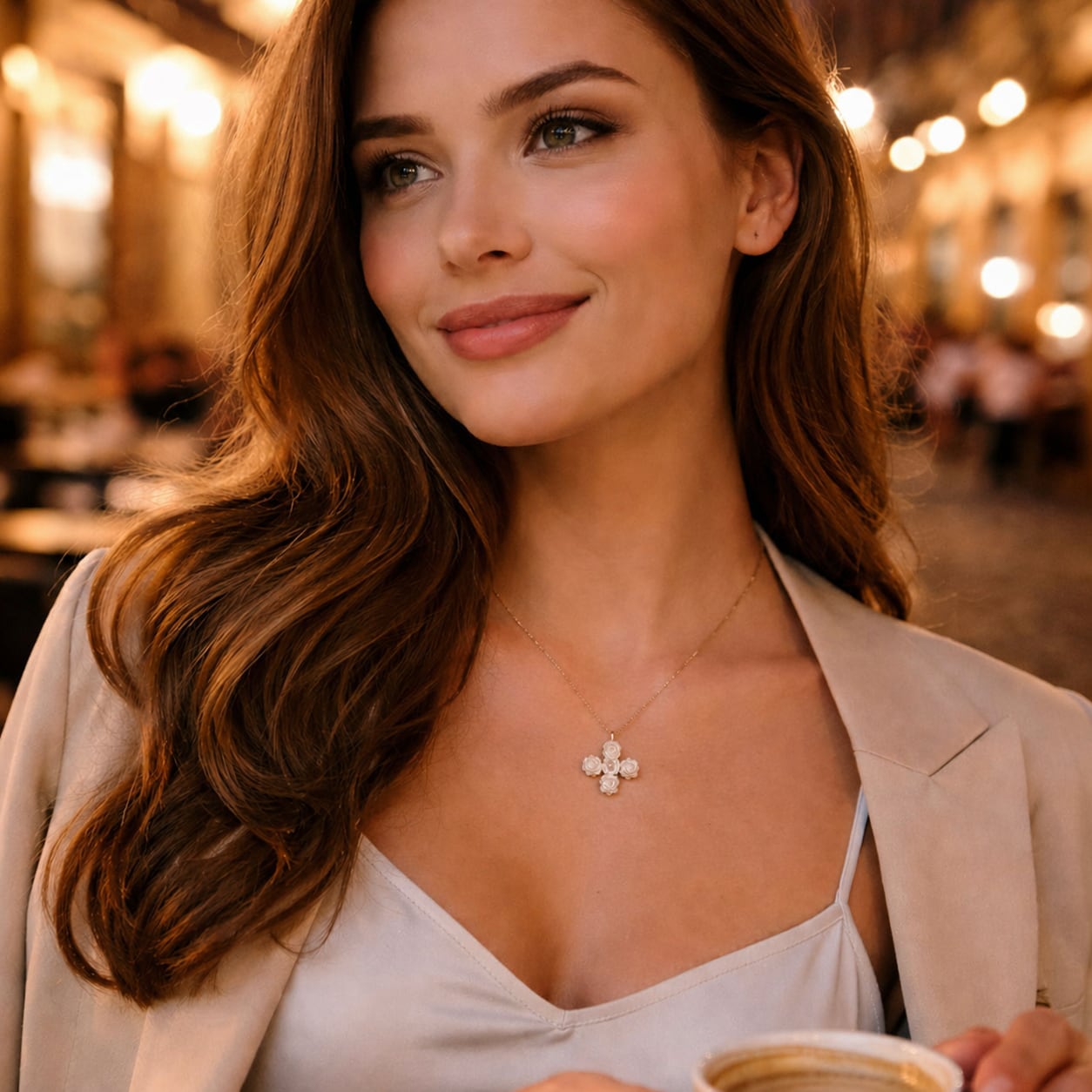 ・甘さを抑えた落ち着きのある佇まいは、日常の装いに自然に溶け込みながらも、さりげなく特別感を添えてくれる存在です。光と影の中で浮かび上がる立体的なフォルムが、静かな中にも確かな存在感を感じさせます