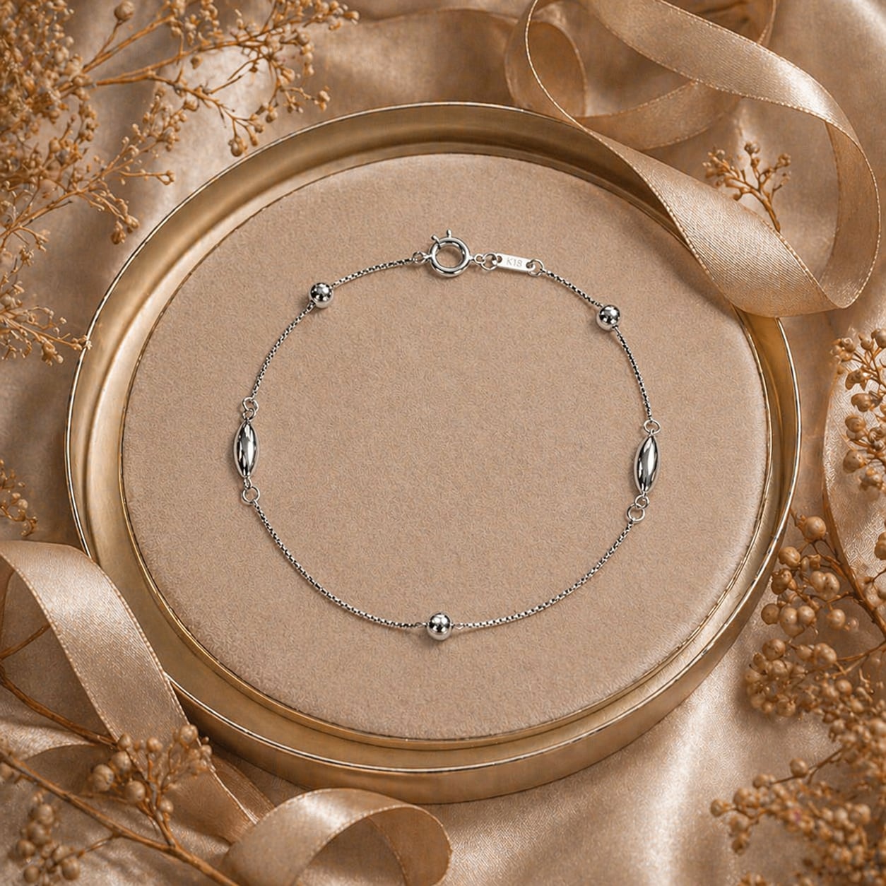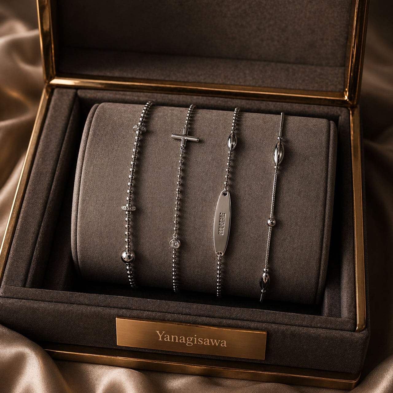 ・繊細な輝きを放つボールチェーンに、優雅な曲線パーツを組み合わせたブレスレット