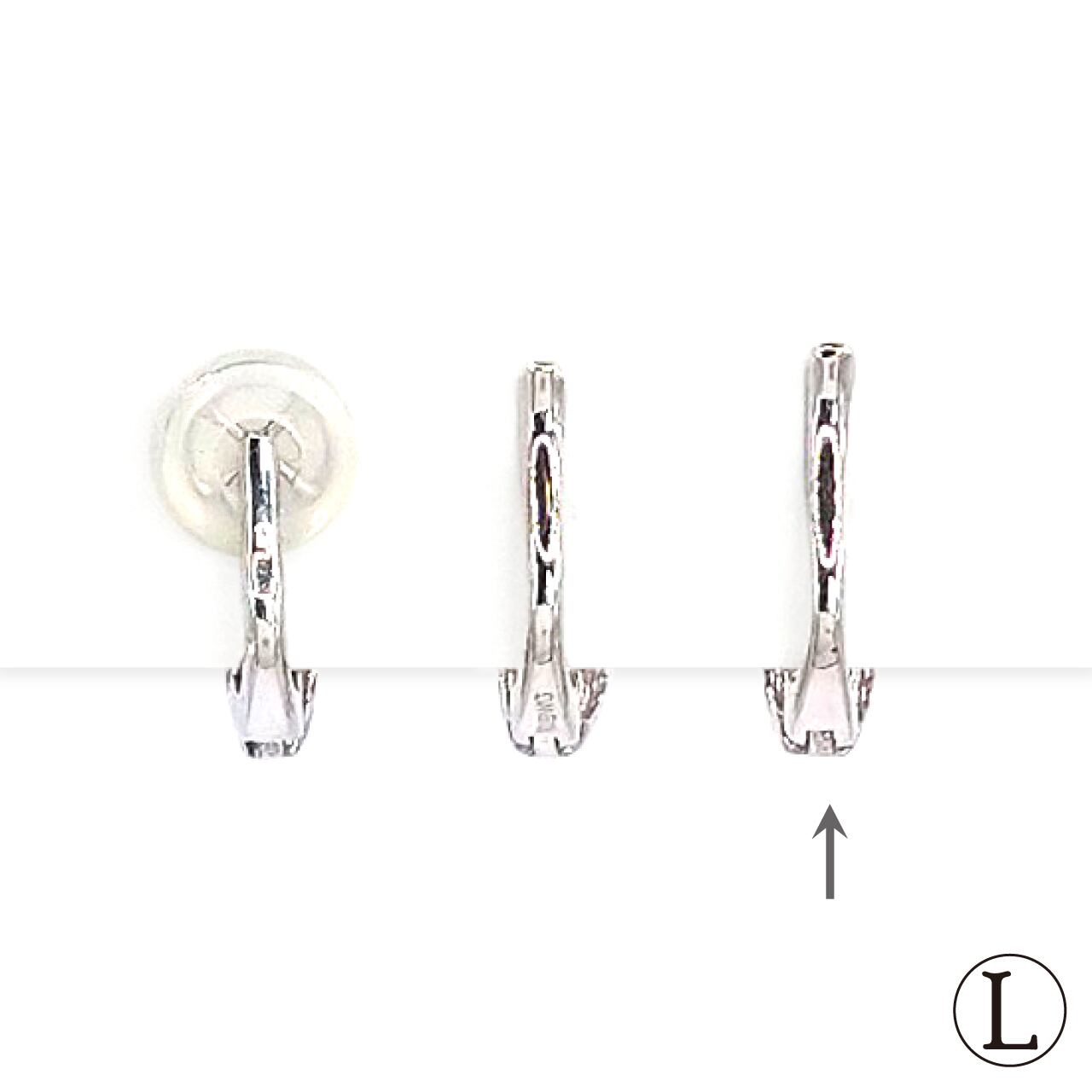二本のホワイトゴールドのライの間に3石のダイヤが煌めくプチイヤリング。シンプルでも、小さくても、やっぱり本物のダイヤモンドはキラリと華やか!留め具が小さく目立たないので後ろ姿もすっきり。まるで付けてないかのような軽い付け心でヘビロテ必至!